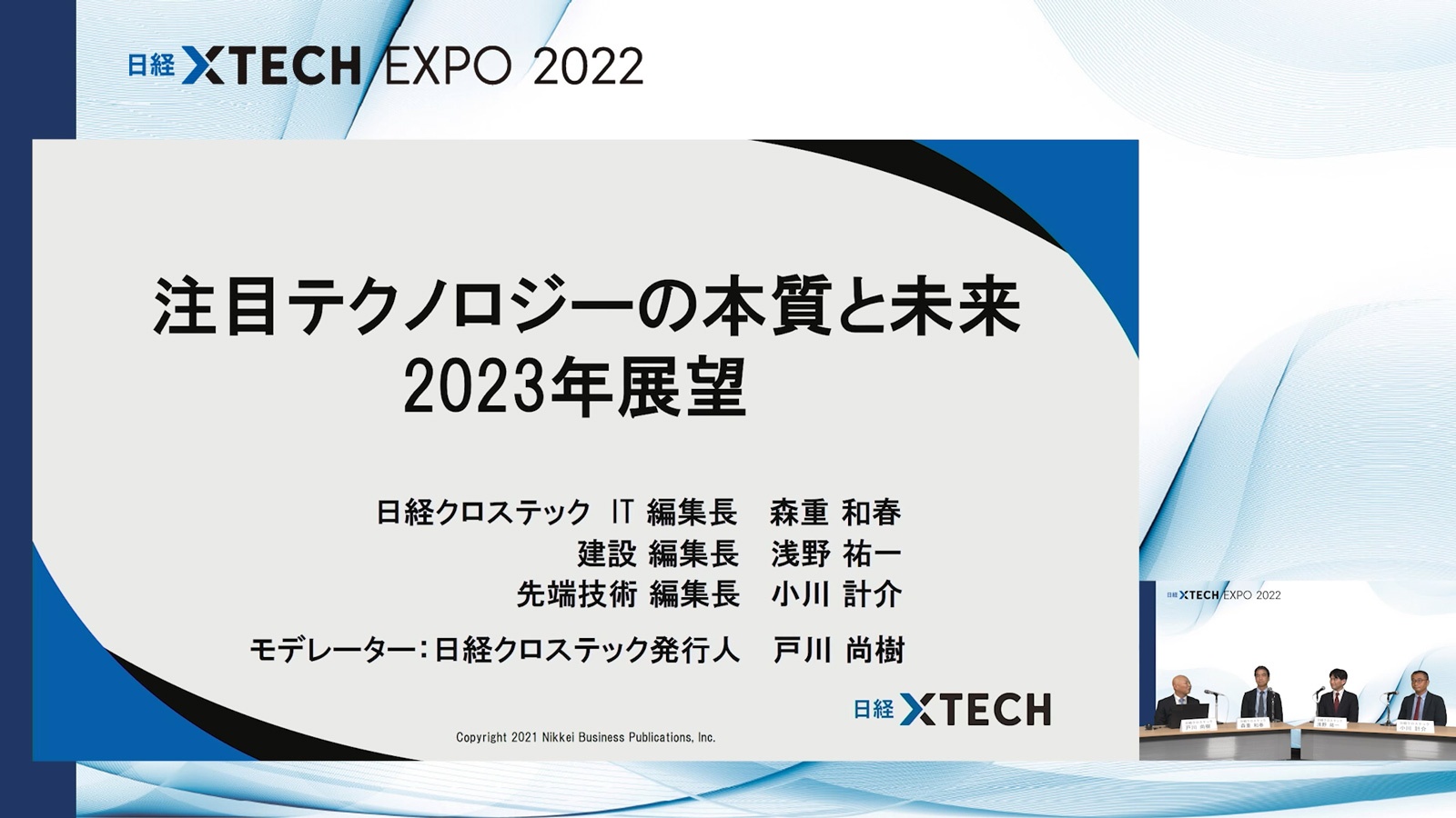 気候変動やパンデミック、ウクライナ侵攻など世界を揺るがす事態が、技術革新を加速させている。2023年以降の社会や経済を刷新する注目技術を、IT、モビリティー、エレクトロニクス、建築、土木の分野から日経クロステックの編集長がピックアップ。内容を解説するとともに、世の中を変える道筋を展望する。
