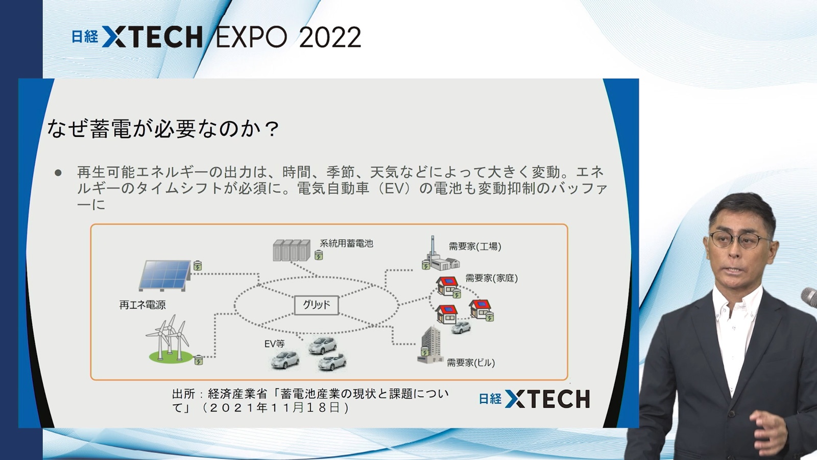 カーボンニュートラルへの急速な移行を受け、電気自動車の動力源や、自然エネルギーの変動の吸収役としてますます重要になるのが蓄電技術だ。本講演では「Liイオン2次電池」に加え、Naイオン電池などの「新型電池」、重力の位置エネルギーなど化学反応を用いない「大規模蓄電装置」の最新動向についてお伝えする。