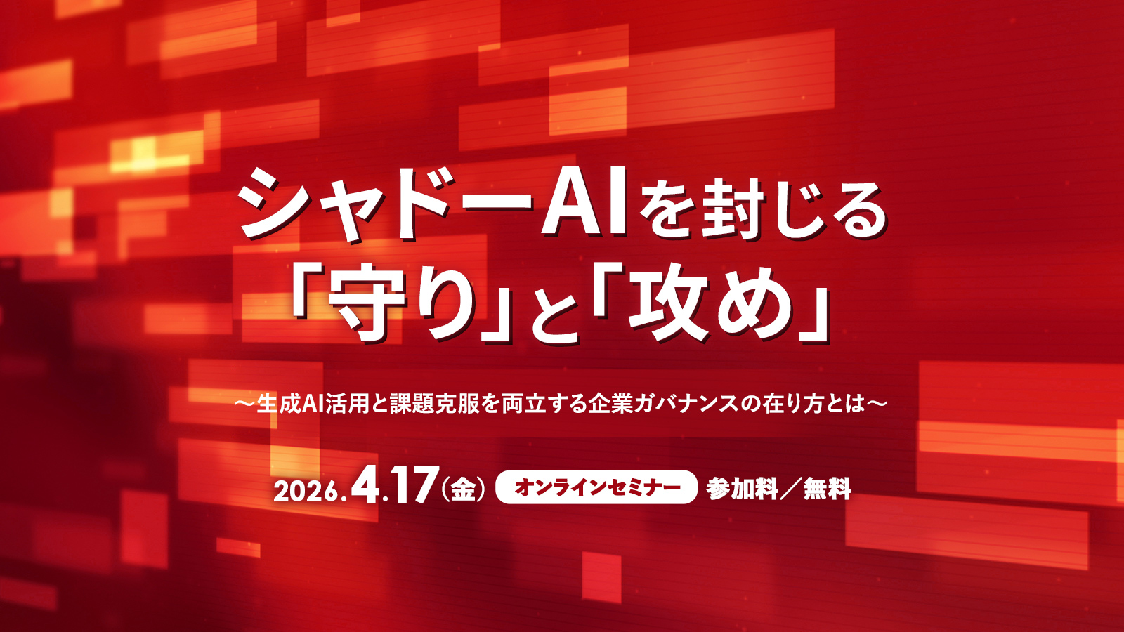 企業が管理できない「シャドーAI(野良AI)」の存在は、内部不正や情報漏洩といった企業の内面的な課題として、経営の根幹を揺るがす喫緊のリスクとして顕在化しています。本セミナーでは、企業課題を克服すべく、シャドーAIに対峙し、生成AIの力を最大限に引き出すための必須条件を議論します。