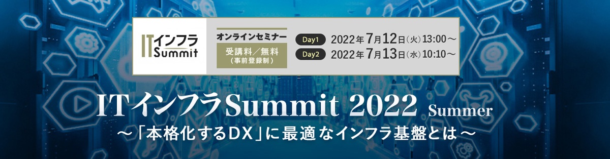 そうしたDXの本格化には「新時代のITインフラ」が必要になります。このような状況の中で「ITインフラSummit 2022 Summer」を、7月12日・13日の2日間にわたりオンラインで開催します。