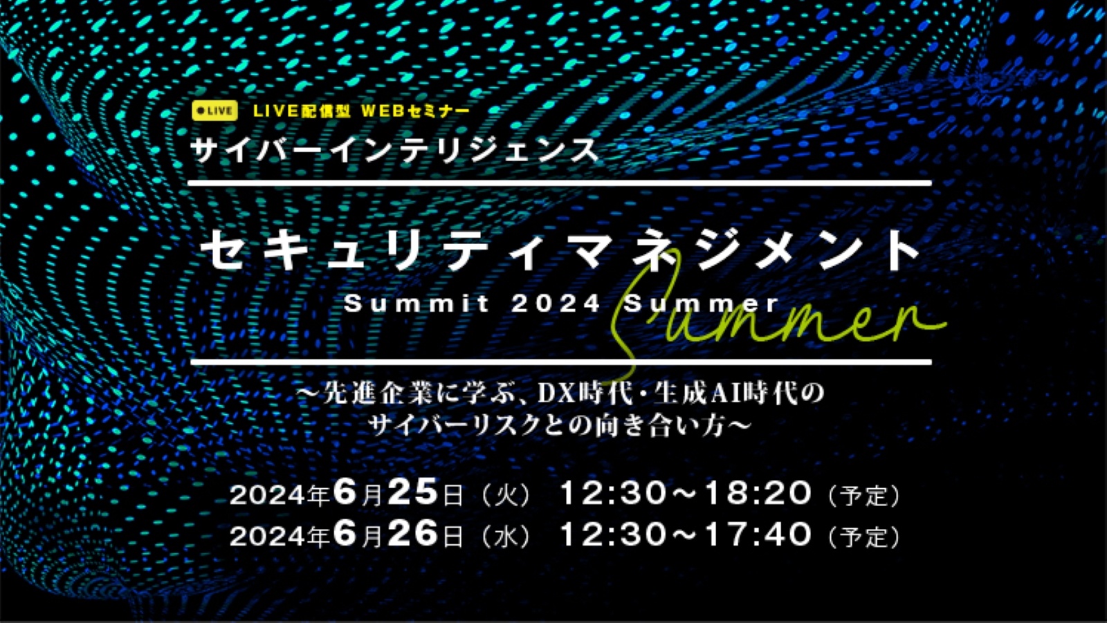 | イベント名 | サイバーインテリジェンス セキュリティマネジメントSummit 2024 Summer |