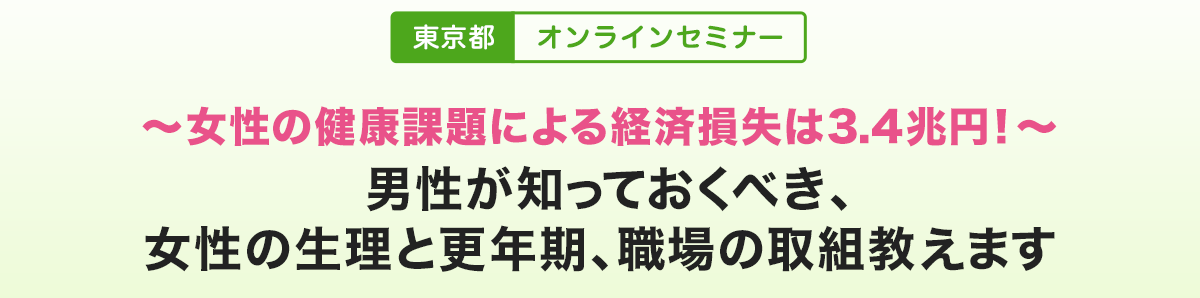| イベント名 | 女性の健康課題による経済損失は3.4兆円!~ 男性が知っておくべき、女性の生理と更年期、職場の取組教えます |