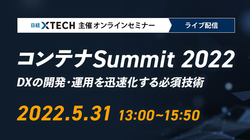 日経BPでは注目を集めている「コンテナ」について、特徴やメリット、今後の可能性、また実際のCase Studyなどを紹介するオンラインセミナー「コンテナSummit 2022」を開催いたします。皆さまのビジネスの一助となる本セミナーに、是非、ご参加ください。