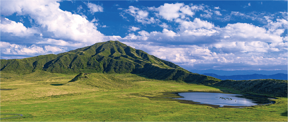 ロゴのシンボルマークは、阿蘇を象徴する草千里ヶ浜の風景を中心に、「水の国・熊本」が育む河川、人の営みと経済を象徴する田畑、そして日本有数の干潟と豊かな生態系を有する海までを一つの円環として表現しています。