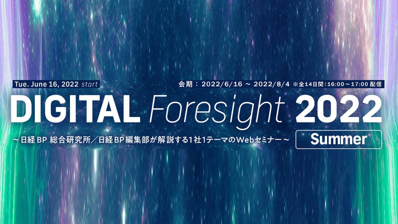 「DIGITAL Foresight」は、日経BPのICTを中心とするテクノロジー系メディアと研究・調査機関を擁する日経BP 総合研究所の取材/調査力を結集、各メディアの編集部と総合研究所の研究員が、これから注目の技術テーマについて解説する1日1テーマのWebセミナーです。
