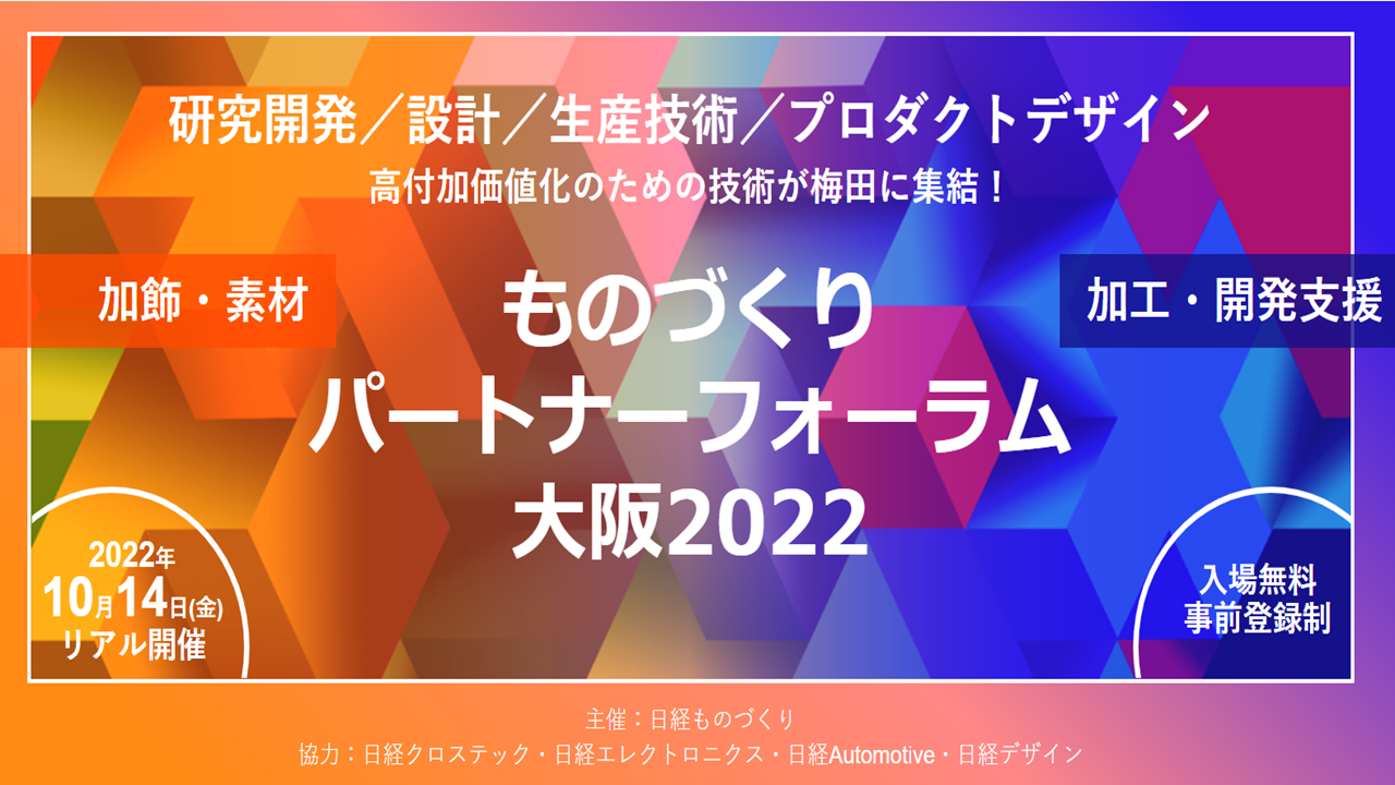 『製品の差別化』『ものづくりの課題解決』に役立つ加工技術や開発支援、生産技術支援サービス、素材や加飾技術などを持つ提案型サプライヤーが出展。技術・ソリューション展示、プレゼンテーションを実施いたします。