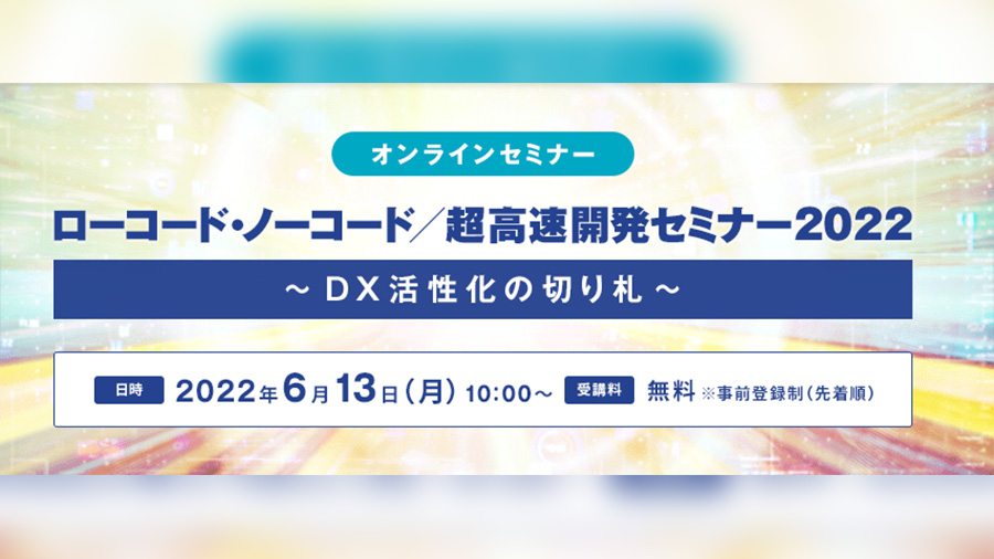 日経クロステックでは『ローコード・ノーコード/超高速開発セミナー2022』を開催します。本セミナーは、成果を上げている企業の事例や戦略を多数紹介するだけでなく、それを可能にしたツール/手法も解説し、ローコードやノーコード、あるいは超高速開発の導入を具体的に支援するものです。