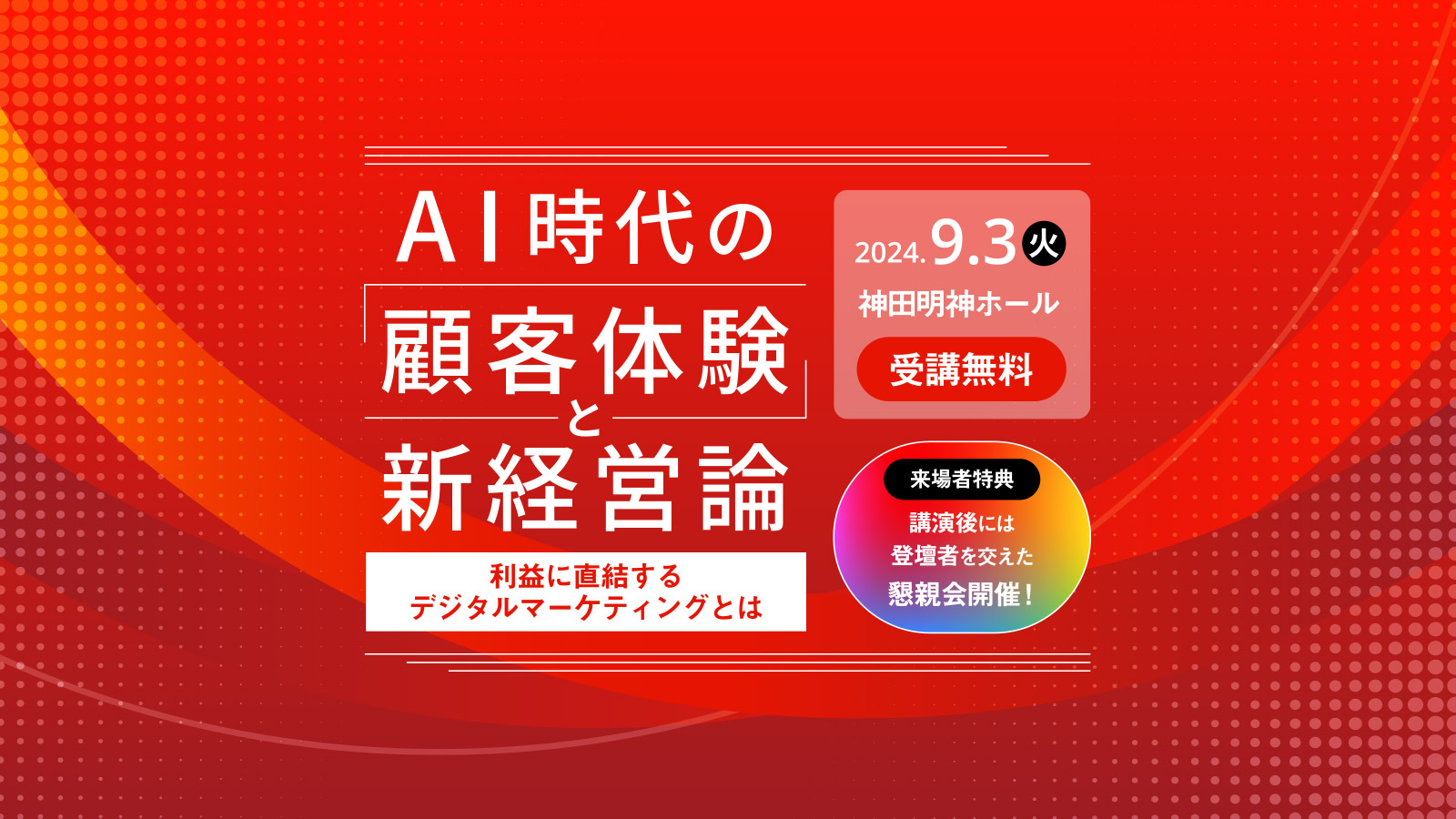 AIを活用して企業の利益に結びつけるにはどうすればよいのか?本イベントでは、AI時代における経営論について有識者の方々に語っていただきます。その中で重要視される「顧客体験」の在り方や、経営と密接な関係となるマーケティングについて論じます。またイベント終了後には、懇親会を開催。登壇者を交えた意見交換の場を提供いたします。