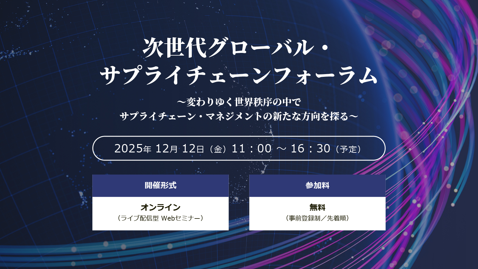 「次世代グローバル・サプライチェーンフォーラム」を立ち上げ、サプライチェーンの専門家、学識者、企業トップなど多様な識者が一堂に会し、変わりゆく世界秩序の中で、世界の動向を見据えた上で日本のSCMが進むべき方向と、その実現に向けた戦略を探ります。