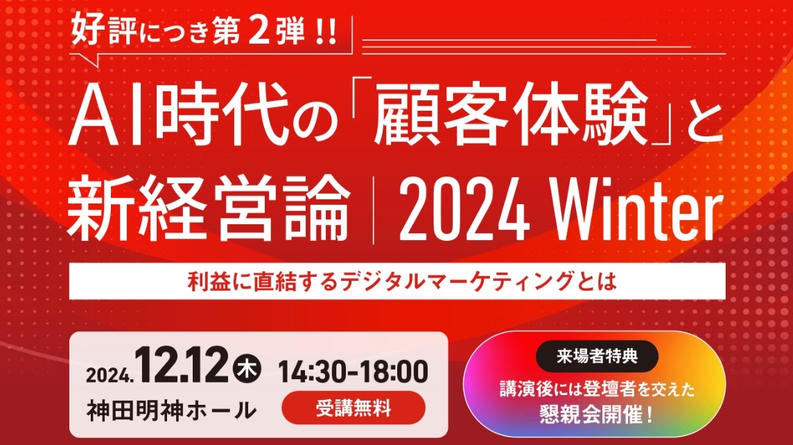 AI時代における経営論について有識者の方々に語っていただきます。その中で重要視される「顧客体験」の在り方や、経営と密接な関係となるマーケティングについて論じて参ります。イベント終了後には、懇親会を開催。登壇者を交えた意見交換の場をご提供いたします。