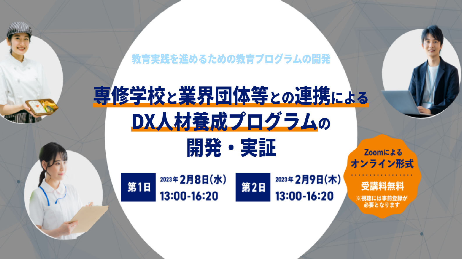 "日本における喫緊の課題であるデジタル人材養成・確保に向け、各業界・分野において、専修学校と業界団体とが連携しモデルプログラムの構築を進めています。 こうした教育プログラム等の開発に向けたさまざまな取り組み、目指すべきDX人材像や必要とされるスキルやリテラシーを発表いただきます。"