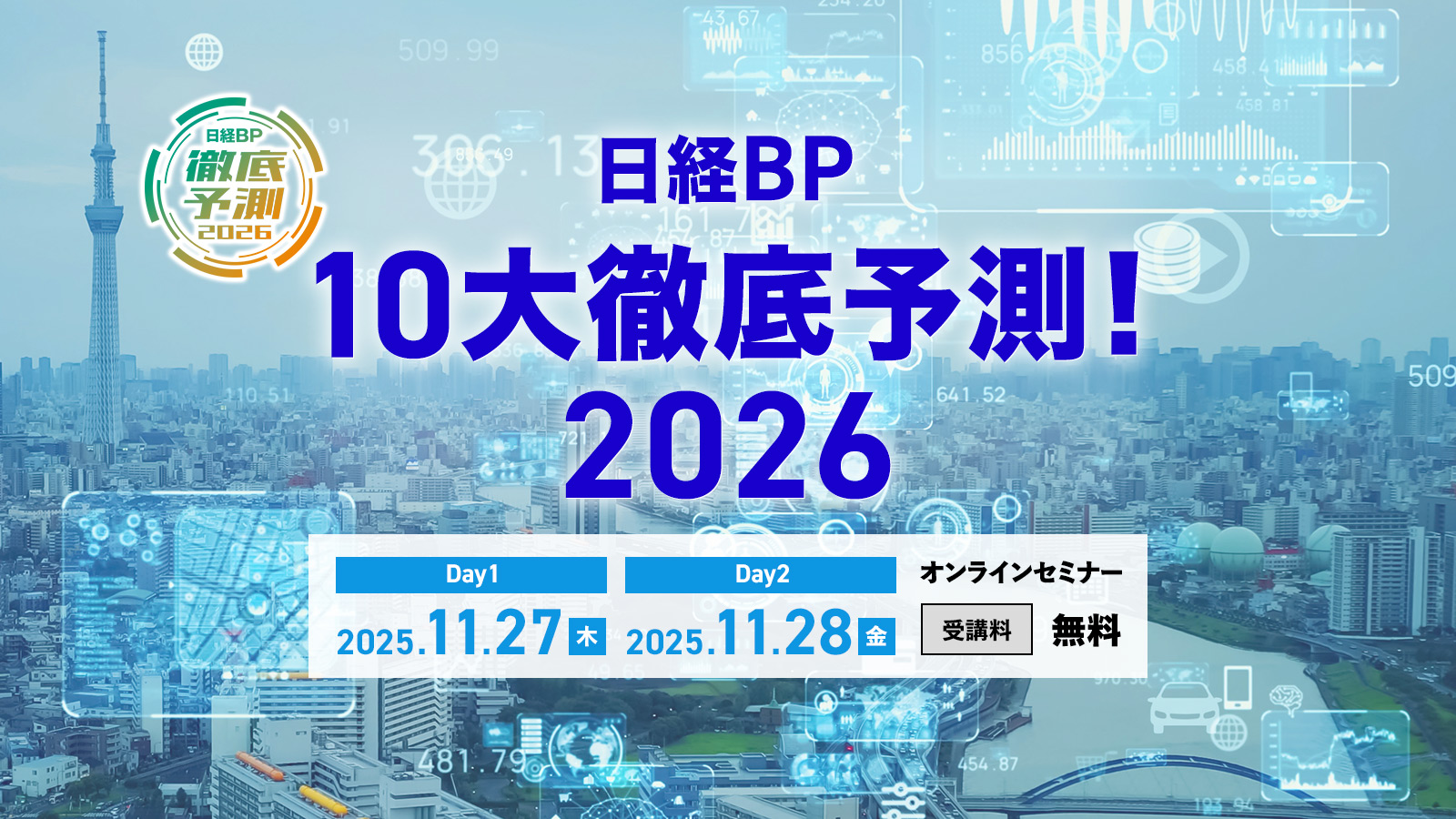 「日経BP 10大徹底予測!2026」特別シンポジウムでは、日経ビジネス、日経クロステック、日経クロストレンド、日経クロスウーマンなどを中心に40を超える専門メディア、400人の専門記者・編集者・研究員の集合体である日経BPの総力を挙げ、2026年の世界と日本はこうなる、と断言する「日経BP10大予測」を発表します。