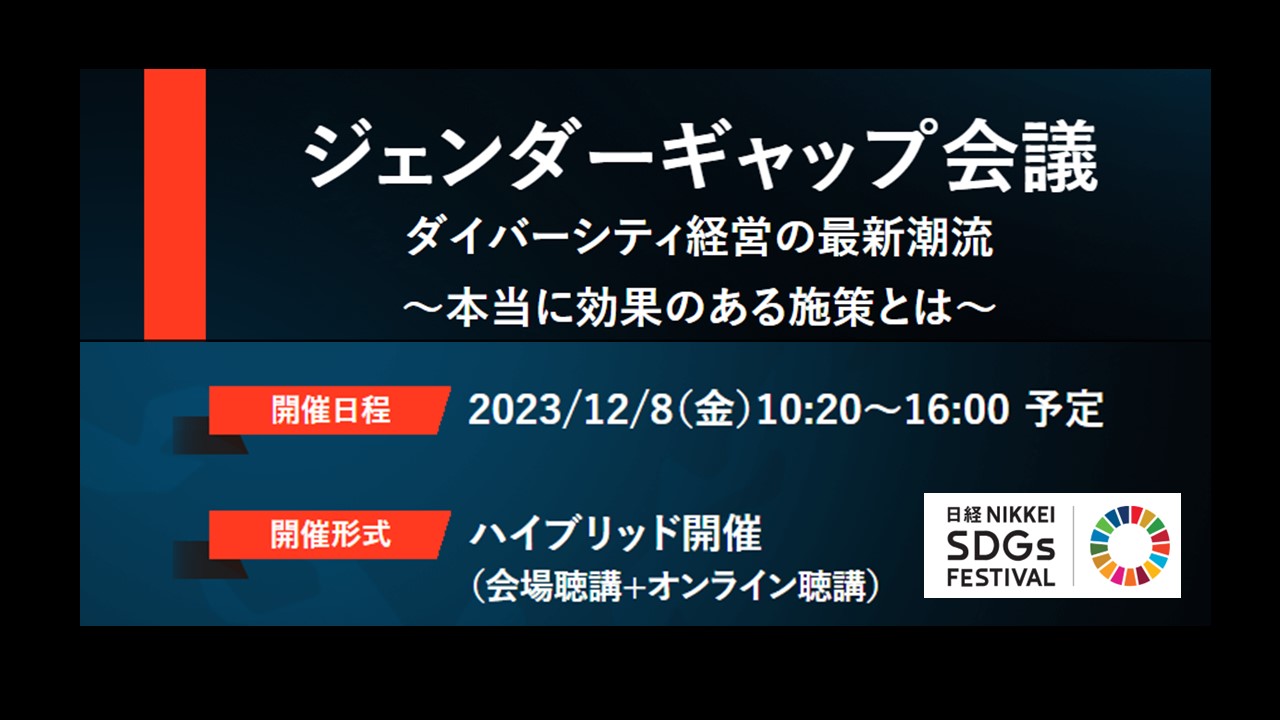 「女性版骨太の方針2023」では、東証プライム上場企業は2025年までに女性役員を1人以上選任し、30年までに女性役員比率30%以上にするという数値目標を掲げました。企業は来年以降、女性役員の育成・登用やパイプラインの構築など、女性活躍推進の「具体的な成果」が求められます。今回のジェンダーギャップ会議では、先進企業による講演やパネルディスカッションを通じて、女性活躍推進で成果を出すための「本当に効果のある施策」を徹底討論します。