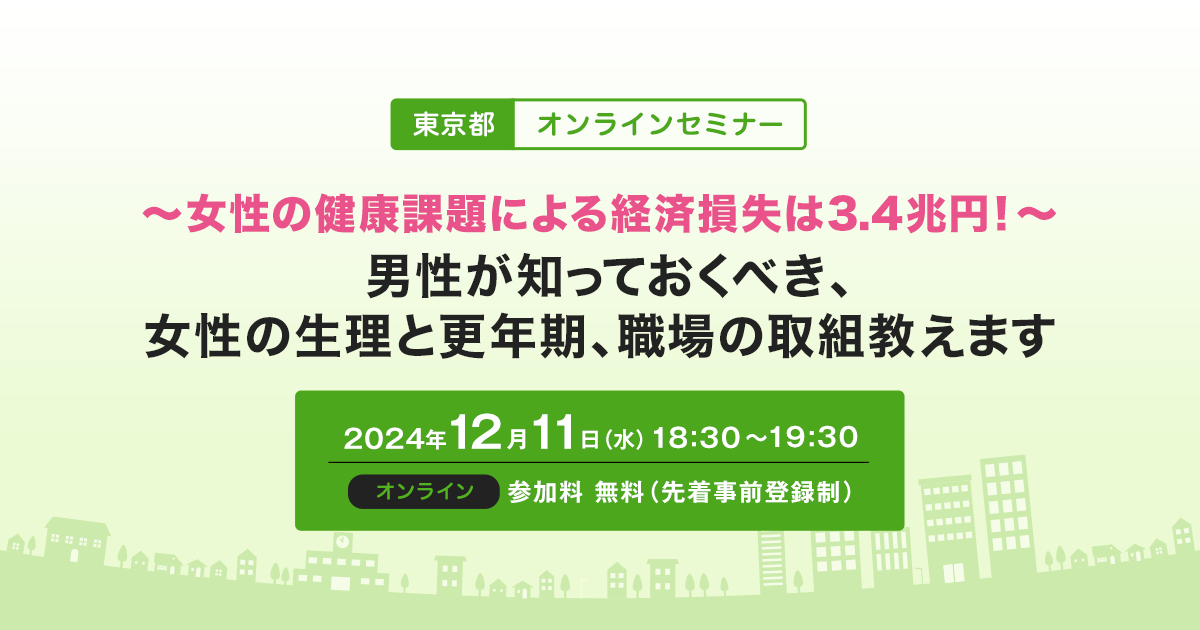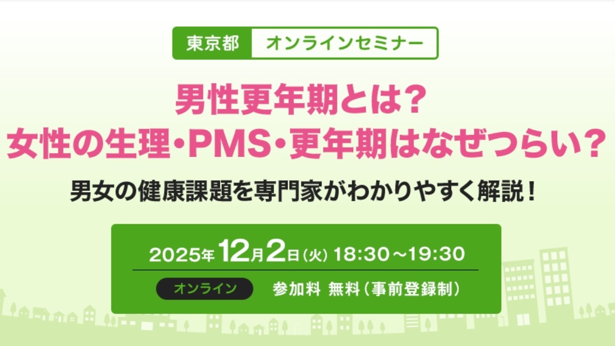 性差に由来した健康課題は「骨太の方針2025」でも取り組むことが明記されており、「男性更年期障害を含む」と記載されています。このセミナーでは、男性更年期の専門医と婦人科医が、男女それぞれの健康課題について、症状や対処法などをわかりやすく解説します。