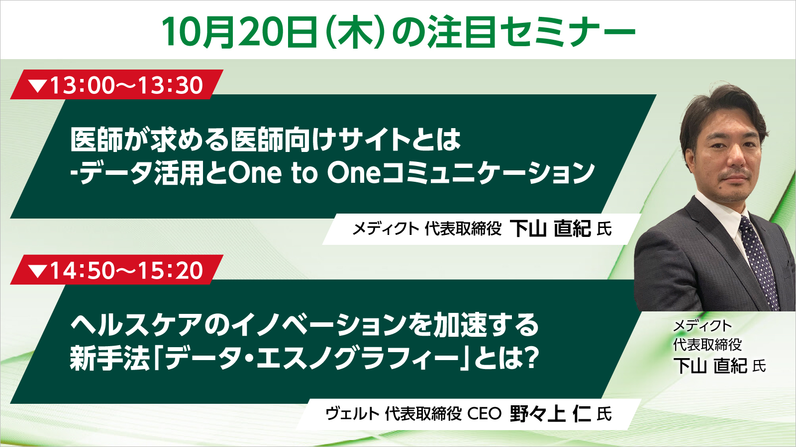 日経クロスヘルス EXPOのお知らせ 10月20日(木)注目セミナーのご案内 更新日:2022.10.11 URLをコピーしました 日経クロスヘルス EXPOでは、ヘルスケア業界の最新動向が分かるオンラインセミナーを開催しております。医療・介護関係者をはじめ、デジタルヘルスサービス・技術を活用する方は必聴です。 10月20日(木)のセミナー
