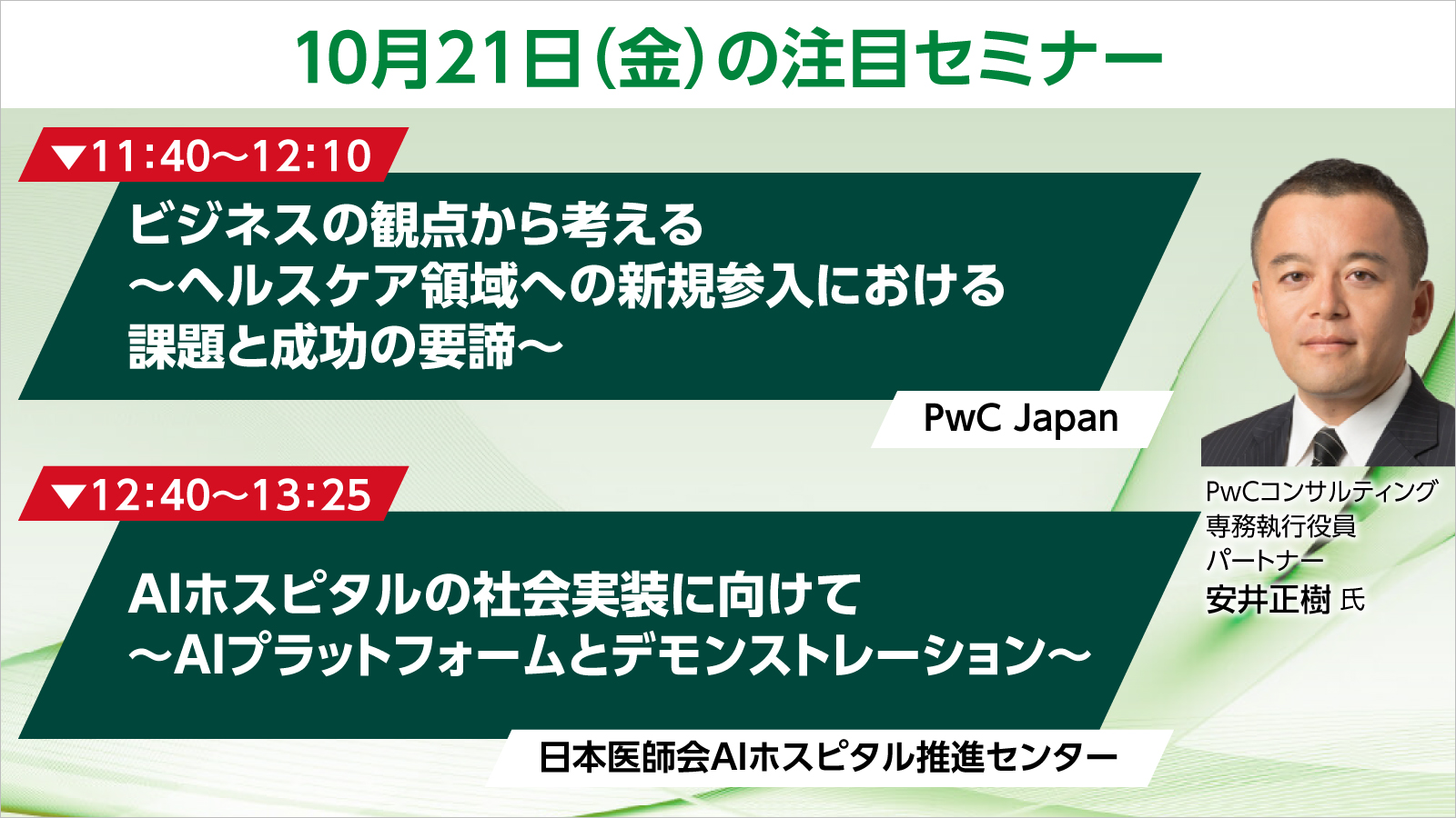 日経クロスヘルス EXPOのお知らせ 10月21日(金)注目セミナーのご案内 更新日:2022.10.11 URLをコピーしました 日経クロスヘルス EXPOでは、ヘルスケア業界の最新動向が分かるオンラインセミナーを開催しております。医療・介護関係者をはじめ、デジタルヘルスサービス・技術を活用する方は必聴です。 10月21日(金)のセミナー