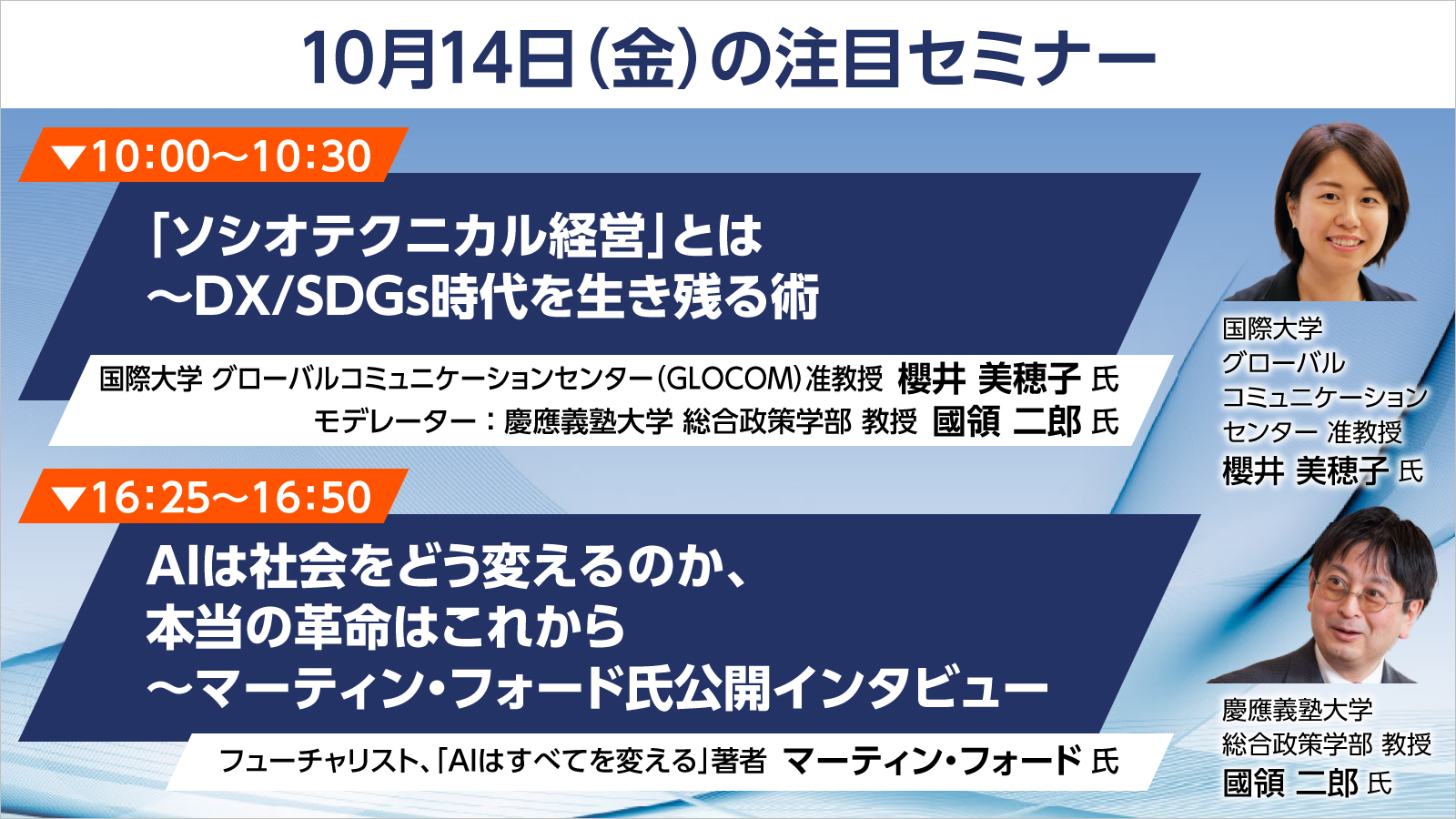 日経クロステック EXPOのお知らせ 10月14日(金)注目セミナーのご案内 更新日:2022.10.12 URLをコピーしました 日経クロステック EXPOでは、IT、先端技術、建設分野に精通した著名学者など様々な有識者・著名人や日経BP編集長が、注目技術の動向や本質、効用、リスクの解説や最新技術の現在地と未来に関するコンテンツを提供します。 10月14日(金)のセミナー