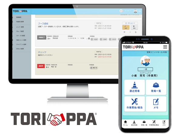 本ブースでは、作業現場から必要な情報を集めてその情報を必要とする人々に使いやすく共有させるサービス「TORIPPA」を紹介していますTORIPPAを利用することで、必要以上の作業負荷は軽減され、集めた情報は利用者間で共有できますので、作業効率や業務品質の向上に役立ちます。