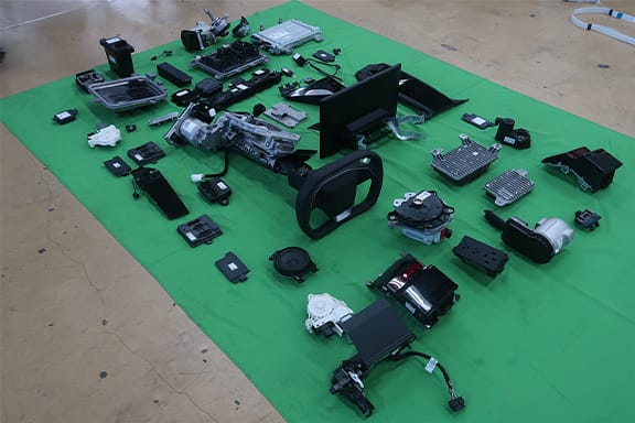 今回の展示では、(2)~(5)に関連した電装品やECU(電子制御ユニット)を展示します。